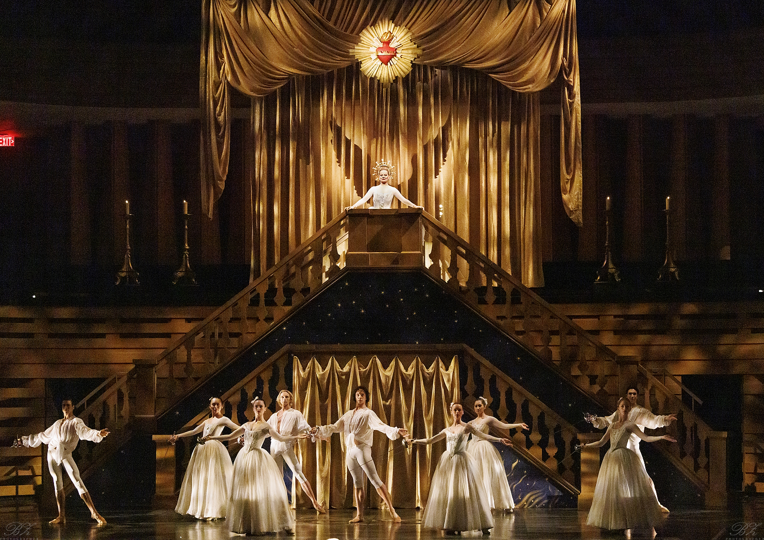 A battalion of advancing angelic Artists of Atelier Ballet armed with slashing swords is, however, no laughing matter as choreographer Lajeunesse Zingg makes strikingly apparent.