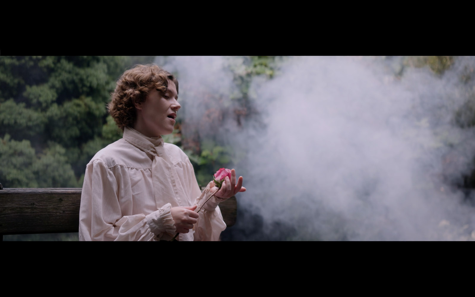 Digitally filmed in stylish anamorphic 16:9 aspect ratio by director of photography Stephen Bell, Maupin ceaselessly delights the eye. Moodily shot on location in an astonishingly brief four days — the Church of St. Martin-in-the-Fields yielding garden scenes and interiors; historic Cameron House cunningly employed as L’Opéra de Paris — this urgent, intensely compelling OperaQ/Tapestry Opera/Coffeeshop Film and Creative collaboration positively glows with sensuality, texture and patina everywhere on display. A scattering of fallen rose petals. A soft dewy rouged cheek. Gleaming stained glass. Weathered wood. Smoke and sumptuous brocade.