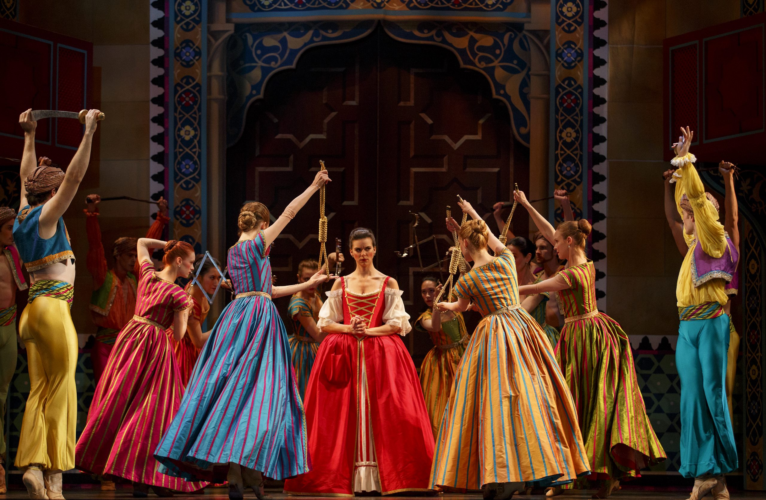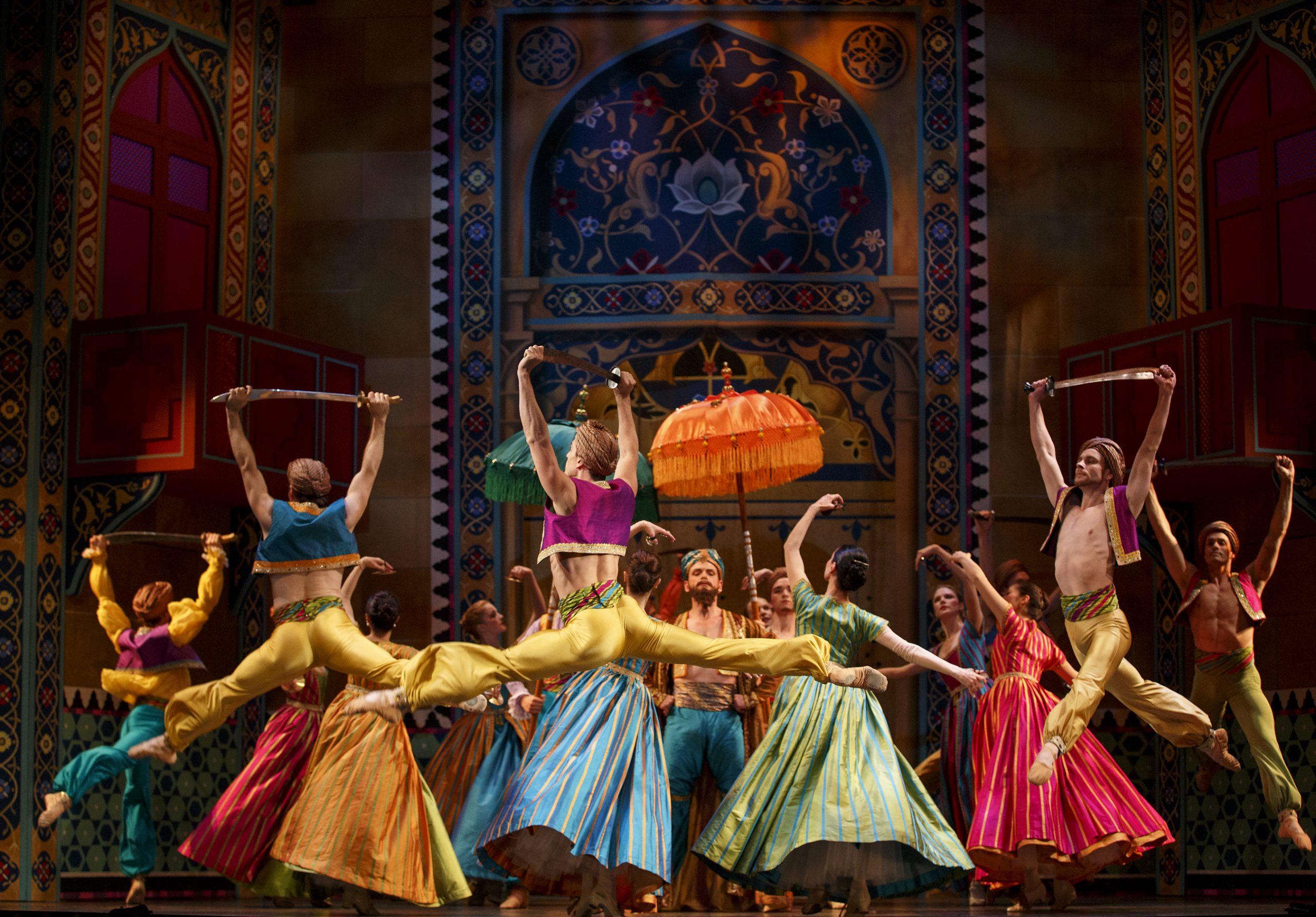 Choreographer Jeanette Zing leads the Opera Atelier corps de ballet in a succession of sweeping dance pageants set against designer Gerard Gauci’s exquisite Mughal-influenced backdrops, all gold and cinnabar and lapis.